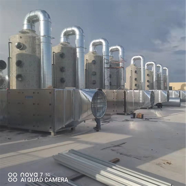 客戶案例:制品廠廢氣處理,噴淋塔加活性炭吸附箱,等離子凈化器處理工藝,整套設備。